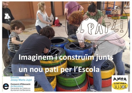 Durant el passat curs 2014-2015 el pati d’aquest centre educatiu va ser imaginat, dissenyat i construït per tota la seva comunitat educativa i s’hi van involucrat tots els agents vinculats amb l’escola, des dels alumnes, mestres i monitors fins a les famílies i entitats i projectes que poguessin complementar aquesta millora (com els projectes Sssplau i Escoles + sostenibles). D’aquesta manera, el procés de transformació ha aportat al pati un hort vertical, un rocòdrom, unes grades, uns jocs dibuixats al terra, una pissarra gegant, una pista d’atletisme, i una millora de la seva acústica.